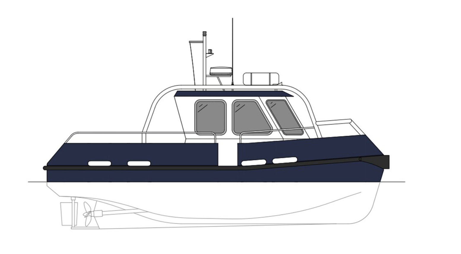 The latest designs and innovation for pilot vessels has seen a lot of change and improvements over the last few years and this model is no exception. The hull shape is ideal for heavy swell and also helps with fuel savings due to the sleek lines and bow. Models of this vessel range from 14 to 18m and can be adjusted to suit your requirements. All the pilot boats have guard or 'steady' rails with Hadrians Rails fitted along the sides and bow of the launches.